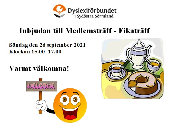 Medlemsträff - Fikaträff, söndag den 26 september-2021, kl. 15.00-17.00